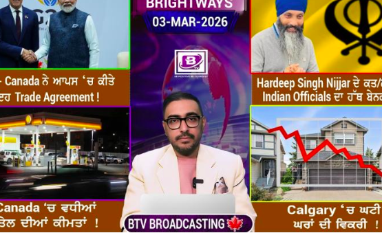 BTV News Canada News International News Punjab News India News More Brightways March 3, 2026 03 March, Tuesday (BRIGHTWAYS EPISODE-686) 03 March, Tuesday BRIGHTWAYS EPISODE-686 !Read More Canada News March 3, 2026 Canada & World News(3 March 2026) Canada News in Punjabi 03-03-2026 CalgaryRead More Brightways March 2, 2026 BRIGHTWAYS EPISODE-685 (2 March 2026) Canada News March 2, 2026 Canada & World News Bulletin(2 March 2026) Canada News February 26, 2026 Canada & World News Bulletin (26 FEB 2026) Brightways February 26, 2026 BRIGHTWAYS EPISODE-683 (26 FEB 2026) Recent News World News Bulletin (3 March 2026) 03 March, Tuesday (BRIGHTWAYS EPISODE-686) Canada & World News(3 March 2026) World News Bulletin(2 March 2026) BRIGHTWAYS EPISODE-685 (2 March 2026) Canada & World News Bulletin(2 March 2026)