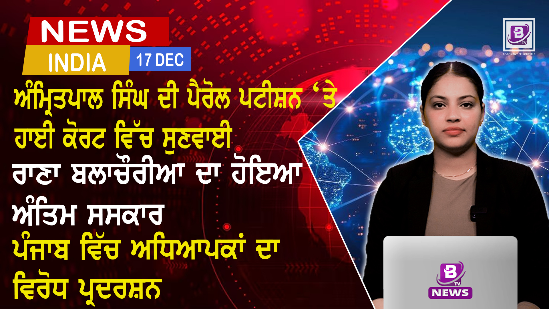 17-12-2025 Punjab and India News BTV Broadcasting #punjabnews#livenewstoday#latestnews ਅੰਮ੍ਰਿਤਪਾਲ ਸਿੰਘ ਦੀ ਪੈਰੋਲ ਪਟੀਸ਼ਨ ‘ਤੇ ਹਾਈ ਕੋਰਟ ਵਿੱਚ ਸੁਣਵਾਈ ਰਾਣਾ ਬਲਾਚੌਰੀਆ…